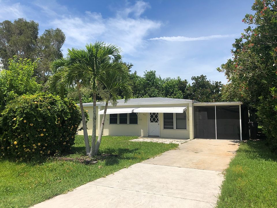 Introducing a 3 bedroom 1 bath house. Conveniently located to shopping and restaurants, minutes to the beach. Nice neighborhood on a quiet street. Immediate occupancy. It has a great private large yard, a storage/laundry room and features a screened carport that gets great breezes. Kitchen has granite counter tops. Lots of window and great flow through ventilation. Brand new central AC.