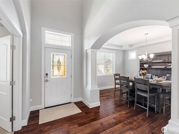 Stunning 4 bedroom 3 bath home in the highly sought-after Puyallup Highlands! Step inside to soaring natural light, custom millwork, arched entryways, and craftsman built-ins framing a modern gas fireplace. The open floor plan centers around a jaw-dropping chef’s kitchen featuring quartz countertops, shaker cabinets, custom oversized island, and professional-grade double fridge/freezer. A private office/optional 5th bedroom completes the main floor. Upstairs, retreat to a luxurious master suite w/ sitting area, spa-like 5-piece bath, walk-in closet & private covered balcony. Three more bedrooms, full bath and massive bonus room provide space for everyone. Enjoy a fully fenced, professionally landscaped backyard—perfect for entertaining!
