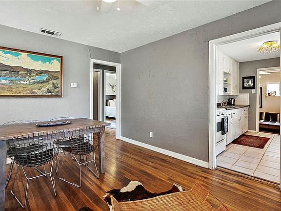 Neat and clean home in an area of rapid transition, Kitchen fully renovated in 2020, Oak hard wood floors, new saltillo tile in kitchen, new laminate wood floors in den. 3 bedroom, 1 Bath , 2 living area. Large back yard. Large back deck. 3 mile to UT, 4 miles to down town Austin BD. Home could be easily expanded to 1,400 sf, should buyer prefer. 1,103 sf is Sellers estimated sf,