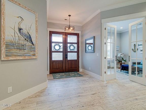 This NEARLY NEW home has all you would expect in a custom built residence. Tile floors throughout, crown molding, coffered ceiling, gas on glass fireplace, barn door closures and walk-in shower. The dream kitchen features quartzite counters, gas range, cafe refrigerator, wine cooler and 2 pantries. Even the laundry room is exceptional in size and finishes. You will be just as pleased with the exterior of the home with a generously-sized screened and tiled porch overlooking a lagoon with widespread sky to provide an abundance of natural light inside the home. Live the Dream in Hilton Head Lakes, convenient to I-95, Bluffton and Savannah.
