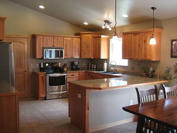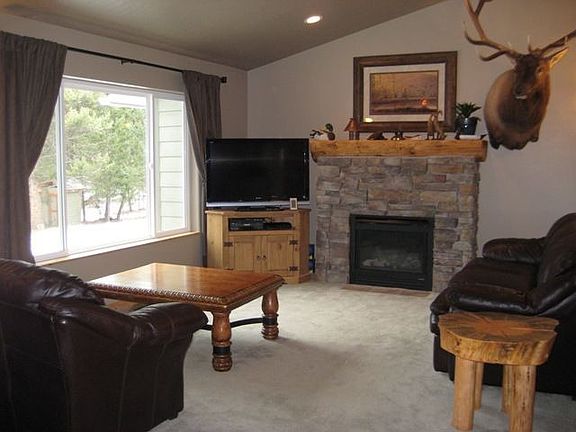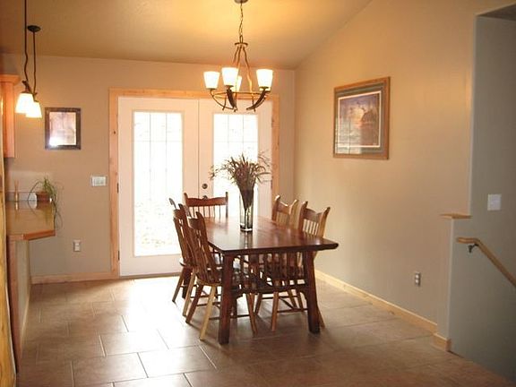 Built in 2007, this home is nestled on 7.9 private, treed acres only 1/4 of a mile from a paved, county maintained road. Amenities include central A/C, vaulted ceilings, solid alder cabinets, stainless steel appliances, a gas fireplace with rock surround, and a spacious master suite with walk-in closet and tiled bath with double vanity and jetted shower. The unfinished, framed lower level offers plenty of room for future expansion and is plumbed for a 3rd bath. The 1,304 square foot oversized three car attached garage offers ample storage space and the walls are sheet rocked and insulated. Outside, the front yard features a 16x14 composite deck and a nice sized portion of the property is fenced for your pets. There are two 16 foot drive gates and two 4 foot walk gates for easy access to the entire property.