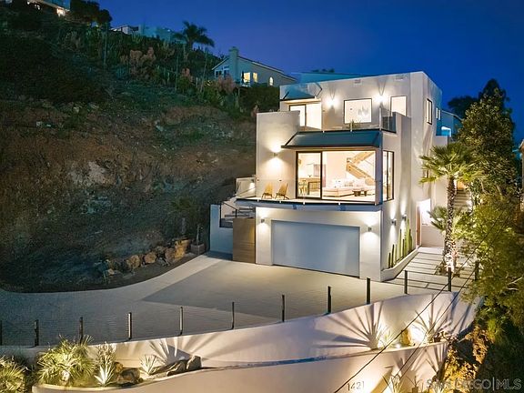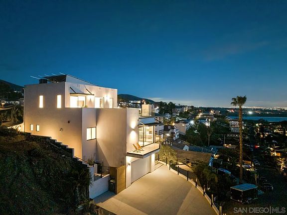 Adjacent lot was sold separately to same buyer for $255,000 for total price of $1,600,000. This brand-new construction offers an unparalleled blend of luxury, functionality, & breathtaking views of San Diego, Pt Loma, and the Coronado Islands. The custom-designed home has 3 beds 2.5 baths, spanning about 2500 sq ft. Perched above a sweeping driveway at the end of a cul-de-sac, the home is a private enclave with Mediterranean landscaping, specimen agaves & palms w/ shadow architectural & plant lighting, The design centers on the open kitchen, with custom-built cabinetry, white oak island, natural quartzite counters, black stainless appliances, & champagne bronze fixtures. The adjacent living room boasts 14’ nano doors & glass deck that let in natural light, fresh air, & close-up views of red-tail hawks riding the thermals. The top floor is devoted to the owner’s suite, featuring sitting area, bathroom with white Carrera marble double 9’ steam shower & free-standing soaking tub, & a large walk-in closet with makeup vanity desk. Outside are courtyards with built-in BBQ, a roof-top deck with built-in bar, fire feature & expansive views of the city lights at night. Back inside, we challenge you to find the hidden speak-easy/wine cellar. Large 10kWh home-owned solar &, except for the stove and fire feature, designed to power the home and lower electrical bills. Overlooking Sweetwater Lake, near Mount Miguel park, just 15 min to shopping in Eastlake Village, 20 min to downtown & airport.