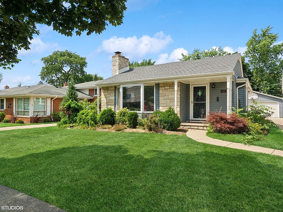 Charming ranch in prime Park Ridge location! Three bedrooms and a full bathroom on the main level, plus a second full bathroom downstairs in the huge finished basement. Central AC and heat. Perfectly sized yard with back porch and a large 2 car garage. Roof replaced in 2021, tuckpointing completed in 2021, siding and windows replaced in 2020.