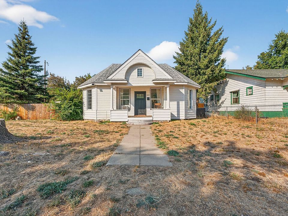 Fantastic opportunity to own charming single level 3 bedroom, 1 bath home on spacious lot in beautiful Spokane! Light and bright with flowing floorplan, this classic 1016 sqft gem welcomes you with tall ceilings, lovely hardwood flooring, and tasteful details throughout! Original brass doorknobs, clawfoot tub and convenient built ins add timeless character. Kitchen features modern cabinetry, laminate countertops, and custom skylight above! Bathroom boasts matching vanity, brass hardware, and circular mirror. Large fully fenced backyard features raised garden beds, as well as a 10x20 shop, perfect for all your hobbies and storage needs! Rest easy with practical updates, including new plumbing with new water lines, remodeled kitchen and bathroom, and new roof as of 2021! Nearby Spokane Community College, Hwy 2, I-90 and a plethora of amenities; Shopping, restaurants, parks, and within walking distance of assigned schools! Welcome!