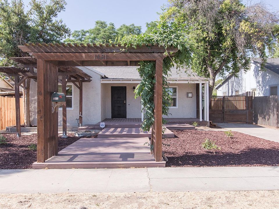 Located in the heart of Fresno, this gorgeous 3 bed 2 bath home is a short walk to shopping, dining, and groceries and a short drive to Fresno City College, Tower District, and Downtown Fresno. This incredibly-priced home has been completely remodeled with new dual pane vinyl windows, new flooring throughout, paint inside and out, quartz countertops with a stylish tile backsplash in the kitchen, a remodeled bathroom, all new fixtures including ceiling fans in all 3 bedrooms, and high-efficiency lighting. The easy maintenance and low water use front landscaping as well as the large back yard with lots of shade from the mature landscaping are the icing on the cake. This home comes with a 2-year roof certification and pest clearance. Schedule your showing today!Detached garage is 18' X 20'