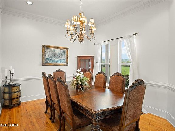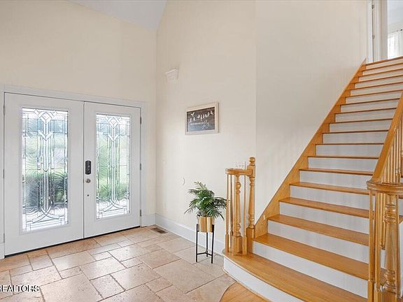 If you are looking for an exceptional home with acreage and gorgeous lake views, you've found it! This beautiful home has space for everyone with 4 bedrooms, 3 full bathrooms, and 2 half baths. It offers everything you've been searching for and more, combining luxury, space, and natural beauty. Tucked along the scenic banks of the Holston River, the home greets you with a long, private driveway, offering picturesque river views from the moment you arrive. Upon entering, you're welcomed by soaring cathedral ceilings and an abundance of natural light streaming through the large windows, all offering stunning views of the river. To the right of the foyer is the formal dining room which leads into the kitchen. The kitchen is a chef's dream, featuring double ovens, ample counter space, abundant cabinetry, and a gas cooktop. Whether you're enjoying a meal at the breakfast bar or in the breakfast nook, the kitchen is designed for both convenience and style. The main living area, connected to both the foyer and kitchen, has beautiful hardwood floors that continue in to the expansive primary suite. Enjoy the cozy fireplace, an en-suite bathroom complete with a tiled shower, whirlpool tub, and an impressively large walk-in closet, and your own large, private balcony overlooking the river. Also on the main floor, you'll find a large utility room, a closet that could serve as a pantry, and a large two car garage with a bonus room above it that could be converted into an apartment. Upstairs, there are three additional bedrooms, two of which have their own private balconies providing even more space to take in the views, and a full bathroom. The lower level is an entertainer's dream, featuring a spacious great room with floor-to-ceiling windows with electronic blinds, kitchen with sink, dishwasher, and refrigerator, a full bathroom, and more storage. It even has a large theater room complete with seating. The great room opens onto a covered patio, offering a perfect spot to relax or entertain. The lower driveway also leads to a second garage, adding even more space and storage. With too many features to list, this spectacular home with incredible views is truly a must-see. Schedule your showing today!