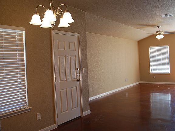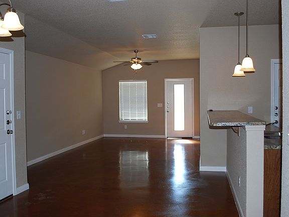 1,310 SF very thoughtfully designed 3 BR/2BA duplex on Hopi Trail in Harker Heights. The upgrades in this home are endless and include tall, 9' ceilings in the entire living area, gorgeous polished concrete floors in dark walnut, extended covered front and back patio, XL living room at 20x12, dedicated breakfast bar area with room for bar stools, separate dining area with access to the over-sized 8x12 covered patio, the fully equipped kitchen which includes refrigerator, electric range, dishwasher and built in microwave, indoor separate utility area, large master bedroom 13'.5"x12'2" with walk in closet and en-suite bath with his and her vanities, beautiful two tone paint with a soft beige on the walls and bright white trim on doors and trim, a one car garage, separately fence - private back yard, fully landscaped with in-ground sprinkler system and so much more! Place this property on hold today with just of the deposit.