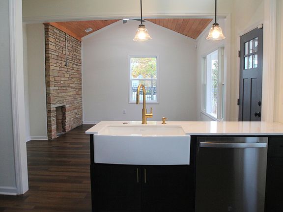 It has an open concept Great Room/ Kitchen perfect for entertaining with beautiful Granite Counter Tops and a farm house sink.
