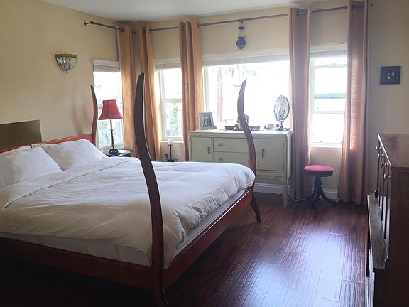 2 BED/1 BATH, 1 OFFICE, 1040 sq ft, LAUNDRY IN UNIT. The apartment will be available starting with 8/22/2019. This completely remodeled 4 plex building is located at 2 minutes walking distance from Silver Lake's Sunset Junction, Farmers Market, Shops, Restaurants and Coffee Shops. The 4-plex building is very well maintained, competely remodeled including new electrical and pluming, providing a peaceful and quiet environment for tenants. The apartment has its private staircase leading to the living room, 2 balconies (front and back), view of the hills, Griffith Observatory, Hollywood sign. Double pane vinyl windows surround 3 sides of the apartment making it bright and airy. There is in-unit laundry with Frigidaire W/D appliances. The front bedroom is a large and beautiful room, large and bright is connected to a bonus room/ office with built in closet. The bonus room exits in a large balcony with beautiful views of the city. The square shaped full eat-in kitchen with stainless steel appliances (Amana fridge, gas stove oven, dishwasher, microwave) fits a good size table with at least 4 chairs. The bathroom has good quality fixtures, full size tub with shower and window. The service entrance at the back of the apartment, with built in closet, opens to a small balcony with stairs to the backyard and parking. The apartment has good quality laminate floors, tiles in kitchen and bathroom. There are 3 AC units: wall AC in Living room, wall AC/heating in the master bedroom + energy efficient ceiling fan, window AC in the family room/ guest bedroom. The heating of the apartment is provided by a new and efficient wall gas heating unit which is very efficient and pleasant. The instant hot water is provided by a tankless water heater. OPTIONAL PARKING: one parking space on the backyard of our gated property for an extra monthly charge. The gated driveway is long and narrow and it will fit only medium to small cars (as Honda Element, Audi A6...). There is plenty of unrestricted parking up and down the street with some struggle for parking on Friday and Saturday when people gather at our Silverlake trendy eateries, clubs and cafes. A BBQ grill is located in a dedicated area of the backyard for common grilling needs. VERY GOOD CREDIT REQUIRED. 1 year