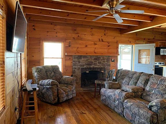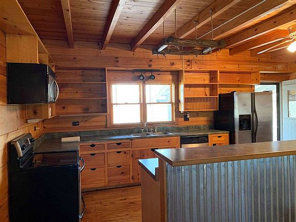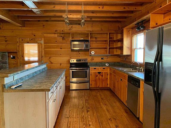 Private and secluded log home situated on 6.06 acres with wonderful views! Hardwood flooring throughout, large open concept kitchen and living area with all stainless appliances, large master suite with walk in closet, woodburning fireplace and so many more details! Detached garage/workshop area, screened in porch, and fenced in yard!