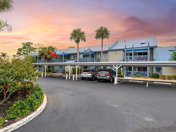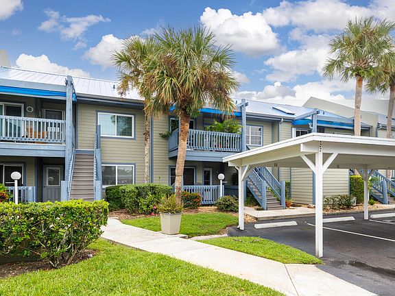 Step into this cozy Florida light & bright 2nd floor, 2-bedroom 1 bath condo boasting 13 ft cathedral ceilings, plus two fabulous porches with back deck over looking Warner Creek and native trees. Located just minutes from beaches, stores & restaurants, Dolphin Village is an all-age/pet friendly community, with 2 pools, 2 club houses, indoor shower, sauna, billiard room, marina, 21' boat slips, boat storage, tennis/pickleball court and metal roofs (2021) offering peace of mind. Don't miss the opportunity to live your best Florida lifestyle. Perfect for year-round and seasonal living, reach out today to schedule a showing.