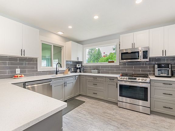 Step inside to discover the fully updated interior, showcasing new flooring, fresh paint, stylish lighting, and contemporary fixtures throughout. The heart of the home is the gloriously modern kitchen, featuring elegant Corian countertops, Matching Stainless appliances and the ideal set up for culinary enthusiasts. This home features a stunning 14x20' covered deck, perfect for entertaining or relaxing while overlooking your private backyard.