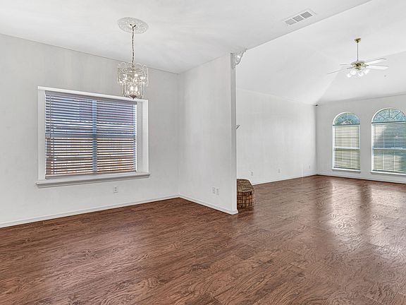 Cozy fireplaceFresh paintNewer appliancesUpdated wood flooringHigh ceilingsTiled back patioBright eat-in kitchen