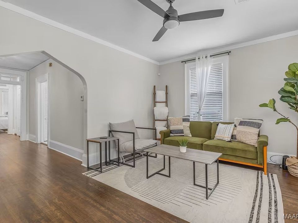 Welcome Home Renovated One-Bedroom in Montgomery's Garden District Experience historic charm and modern comfort in this beautifully updated home. This home offers classic architectural details and contemporary finishes. Original hardwood floors, high baseboards and graceful archways provide elegant sightlines from the living room through the dining area to the bedroom. Fresh paint and abundant windows fill each room with natural light, while a modern ceiling fan and central air ensure year-round comfort.