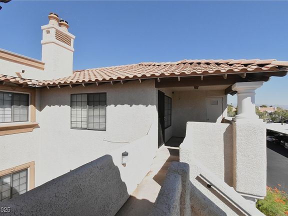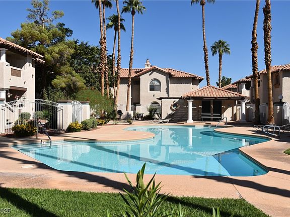 Gorgeous, remodeled 2nd floor condo with 2 balconies and a partial Strip & Mountain view. The community has a pool & spa. This spacious 2 bedroom, 2 bath condo has a carport & guest parking. The living room has vaulted ceilings, lighted ceiling fan, gas fireplace, & pot shelf. Dining area has a chandelier. The kitchen includes stainless steel appliances, white shaker soft close cabinets with sliding drawers, quartz countertops, gas stove, dishwasher, microwave, & French door refrigerator. Plank flooring throughout, except the bedrooms have new carpeting. There are 5"baseboards, raised panel doors, blinds, & fresh custom paint. Spacious primary bedroom with a lighted ceiling fan, walk-in closet, & covered balcony. Primary bath with a garden tub-shower, newer tile surround and quartz countertop. 2nd bedroom has a walk-in closet. Hall bath with quartz countertop, tub-shower combination, and newer tile surround. The AC unit was replaced last November. HOA includes Trash, Water, and Sewer.