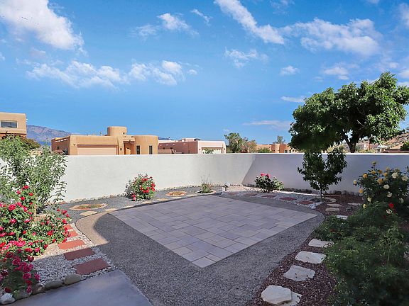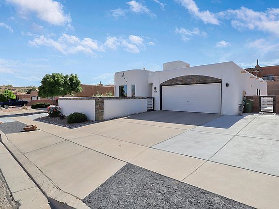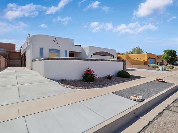 This stunning 3-bedroom, 2-bathroom home boasts breathtaking views of the Sandia Mountains that will leave you in awe. The kitchen is a chef's dream, featuring a spacious kitchen island and a large pantry, perfect for whipping up delicious meals and entertaining guests. Step outside onto the wrap-around patio, complete with stained concrete, metal beams and decorative stones, where you can enjoy the beautifully landscaped backyard that includes a lovely gazebo, perfect for hosting outdoor gatherings with friends and family. The rooftop deck features trex decking, providing a perfect spot to take in the panoramic views of the Sandia Mountains. The RV pad is big enough to comfortably accommodate 2 RVS, making it a perfect option for those who love to hit the road and explore. Inside, the