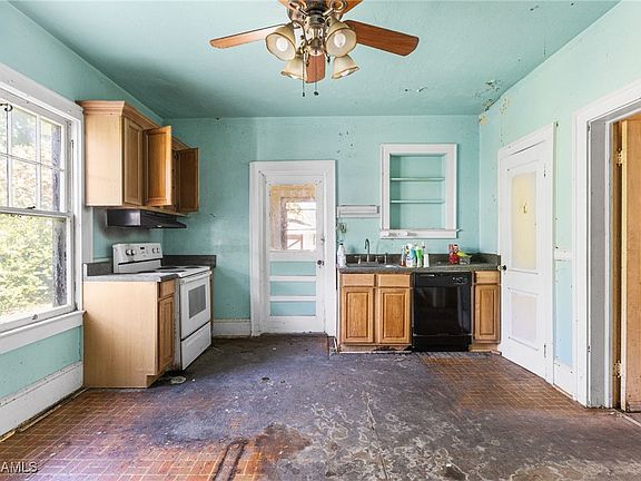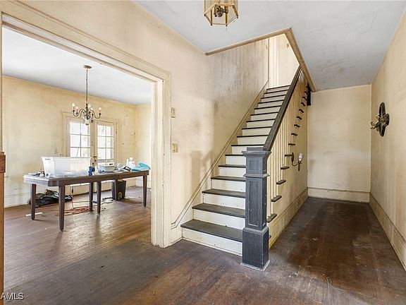 The home's flowing floor plan includes four spacious bedrooms, two full baths, and one half bath — all generously sized and filled with character. An attic fan whispers of simpler times before central air, and while this home will require extensive restoration, it offers the bones and soul of a masterpiece waiting to be brought back to life.