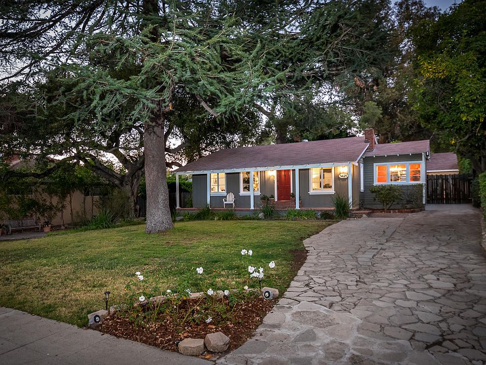 Designed in 1934 with classic farmhouse architecture, this stunning 3-bedroom, 1 and 3/4-bath residence blends tradition and functionality into a spectacularly warm and comfortable charm. Visitors enter the grounds by making their way up a long pathway, which is surrounded by lush, mature landscaping. A large covered stone porch surrounds the entire frontage of the home with comfortable adirondack chairs flanking the front door. Upon entering, architectural creativity becomes immediately apparent. To the East there is a spacious, formal dining room with casement picture windows that overlook both the front and private rear gardens. Adjacent to that, you will find the galley kitchen which is anchored by a large fire oven, double sink, stainless steel appliances and an eat in kitchen nook. The West side of the home hosts 3 bedrooms and an additional room that has been designed as a delightful work from home space. The living room can accommodate many different furniture arrangements and is outfitted with a brick hearth fireplace studded with built in bookshelves. Natural oak hardwood, windowpaned ceilings and perfectly framed window outlooks of the yard round out the room. Other features are the originally tiled bathroom, a walk in pantry and a 3/4 bathroom just off the 3rd bedroom. The home occupies a choice 11,049 square foot lot. It is in prime walking distance to all the shops and restaurant options that the highly sought-after community Montrose has to offer.