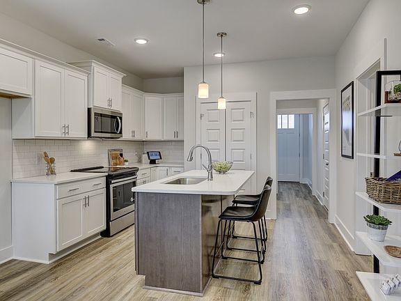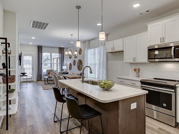 Unlike any other townhome! The Leland floorplan end unit! First floor primary suite w/walk in closet & full double vanity bath. Open 2nd floor loft leads to 2 bedrooms w/ walk in closets & full bath. Wide planked random pattern LVP (hardwood look) first floor main living. Upgraded carpet w/ 6 lb pad, Ceramic tile flooring in full baths and laundry room. Raised height vanity tops in full baths. Quartz countertops throughout. Single bowl kitchen sink and subway tile backsplash. Ivory kitchen cabinets. Stainless stove, dishwasher, microwave. Primary bath 5' tiled shower.
