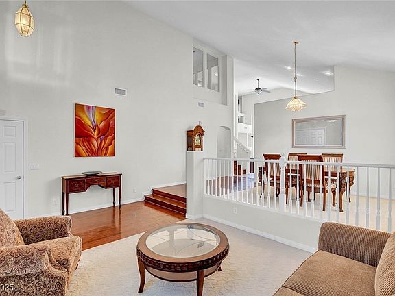 Location location location describes this Seven Hills original home conveniently located near the Las Vegas Raiders training facilities as well as the Henderson Airport. Lots of natural light and vaulted ceilings greet you as you step into the formal living room. The elevated formal dining room is perfect for reliving past memories as you create new ones. The spacious kitchen including double oven, gas top stove, GE Monogram refrigerator, original tile countertops and lots of storage space will bring a smile to the gourmet. Large nook for informal dining. The large family room with a cozy fireplace provide views of the large backyard & mountains beyond. A well designed floor plan offers a large Primary Bedroom downstairs and 3 generously sized bedroom upstairs. Primary Bathroom includes a vanity desk, double sinks, relaxing separate tub with jets & large walk-in closet . Large loft with awesome view of the mountains plus an upstairs den. Large backyard big enough for swimming pool.