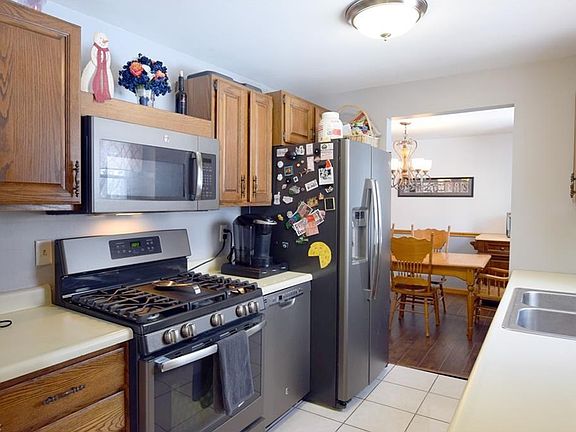 This 1971 built home offers plenty of space in a quiet neighborhood. A large 4 bedroom layout offers hardwood flooring throughout the house with large tile kitchen/baths and carpeted bedrooms. Two ample first floor living areas accent the layout, with the formal featuring a brick facade and fireplace. A well lit kitchen and dining area can be found next to the additional indoor/outdoor expanded dining quarters and sun room; featuring rich wood trim. A smaller first floor bathroom, and two full upstairs baths reside; one being tied to the master bedroom with walk in closet space. A semi finished basement offers a bar area and additional living room areas. Very well manicured, fenced in backyard is complete with a finished patio area and offset shed.