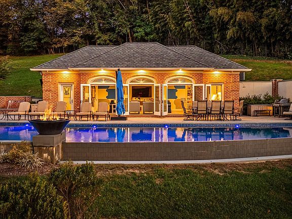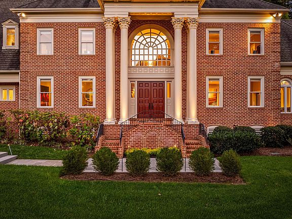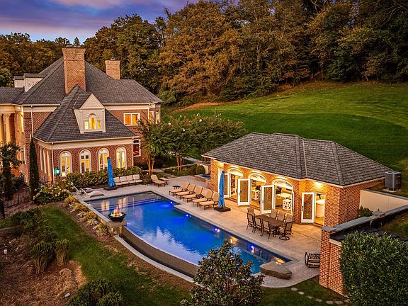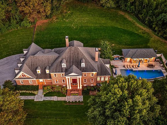 Tucked away on a serene 3.3-acre parcel in the heart of Ruxton, 1421 Wine Spring Lane is a distinguished Georgian estate where classic architecture meets modern sophistication. Thoughtfully reimagined by Mel Benhoff, this residence spans over 9,000 square feet and offers an exceptional blend of scale, craftsmanship, and privacy. A stately columned entrance opens to a dramatic granite foyer, setting the tone for interiors defined by symmetry, light, and timeless detail. Formal entertaining rooms are anchored by rich millwork and wood-burning fireplaces, while a sun-drenched family room and expansive chef’s kitchen invite everyday comfort. The upper level hosts a luxurious primary suite with soaring tray ceilings, a spa-inspired bath, and a bespoke dressing room. Additional bedrooms are generously proportioned, with elegant finishes and ample storage. A third-floor retreat and fully equipped lower-level gym provide flexible space for recreation and wellness. Outdoors, the grounds unfold into a private oasis with an infinity-edge pool, integrated spa, cascading waterfall, and fire features—all framed by mature trees and curated landscaping. A four-car climate-controlled garage, custom stained-glass accents, and whole-home smart systems complete the offering. Ideally positioned near Towson’s finest schools and amenities, this estate is a rare opportunity to live with grace, comfort, and enduring style.