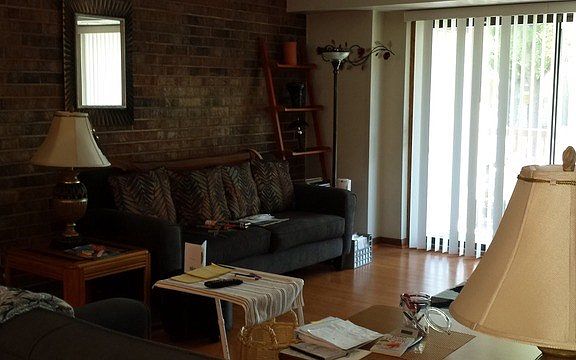 Adorable, first floor 2 bedroom 2 bath condo. Spacious living room w/ exposed brick wall & gas fireplace. Master suite offers ample closet space, private bathroom w/shower. Balcony off dining rm & 2nd balcony off living rm. All appliances stay! Elevator & Heated basement/ garage. Private club house has indoor pool, outdoor patios, party room, pool table, fully equipped fitness room, and showers.