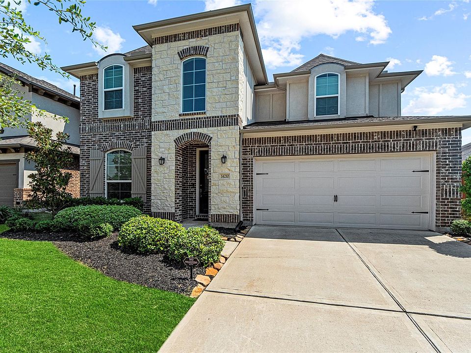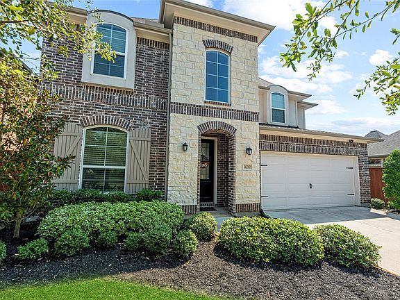 Exquisite 2-story residence designed for both elegance and comfort, offering 4 bedrooms and 3 full baths with a private guest suite on the first floor. A sweeping wrought iron staircase and formal dining room set the stage for refined living. The family room showcases soaring ceilings, a striking corner fireplace, and a dramatic wall of windows. Amazing chef’s kitchen boasts quartz countertops, white cabinetry, stainless steel appliances, gas cooktop, under-cabinet lighting, and a spacious island with pendant lighting and bar seating. The luxurious primary suite features a dual vanity, garden tub, separate shower, and walk-in closet. Upstairs, enjoy a game room for endless fun and a media room designed for the ultimate movie night. Step outside to your backyard retreat with a sparkling pool, covered patio and full outdoor kitchen—all with no back neighbors for added privacy. Home also includes a hookup for a generator. Walking distance to the community park. Zoned to Tomball ISD.