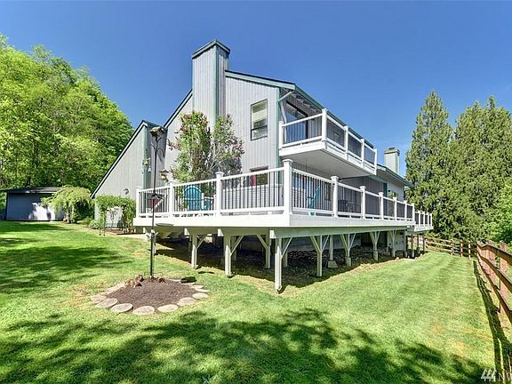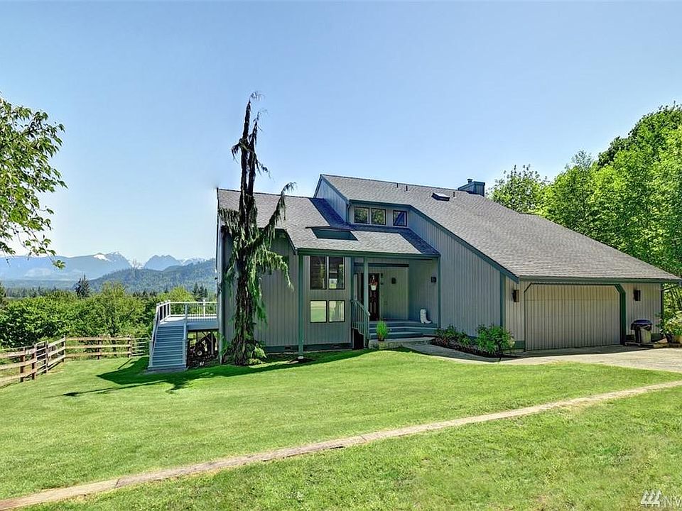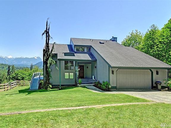 Mountain Views that will take your breath away! This 3 bedroom 2.5 bath + office home offers Easterly views from almost all rooms but especially the sunken living room, kitchen, dining & wrap around deck. The Master has an additional deck to enjoy along with a huge walk in closet and private bath. This low maintenance 5 acres equestrian property is 15 min out of Woodinville w/no neighbors in site! There is 3-4 acres fenced w/a 24'x24' barn w/2 stalls, tack room, H20 & power. The hot tub stays!