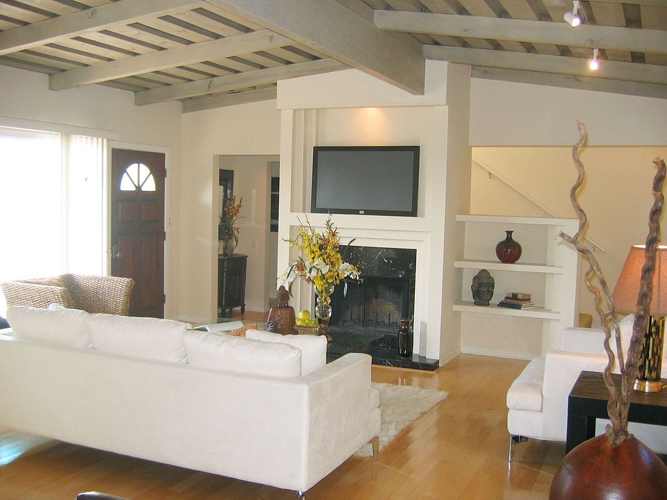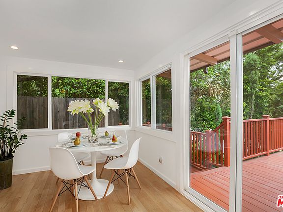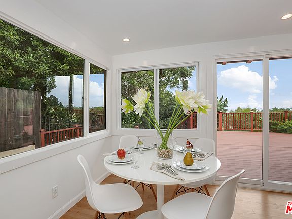 Impeccable contemporary Bel-Air home with spectacular panoramic views of the canyons and city lights. This exceptional home is located in a very private area of Mulholland that's rich with celebrity history. Perfect for those seeking a retreat and great for the southern California indoor and outdoor entertaining. Light and airy living room features maple hardwood floors, solid Mahogany interior doors, light wood beam, a fireplace with dark marble accents. Walk through the formal dining area into the open modern kitchen that is functional with ample storage space which includes Viking stainless steel appliances, dual oven, dual sink and 6 burner stove that is sure to delight any chef' at heart. In the breakfast area are large windows & sliding doors leading to the private Redwood deck with breathtaking views from every angle. 3 Bedrooms downstairs, upstairs is a private master lounge with relaxing views, a fireplace, and a master bedroom. Lush landscaping creates a tranquil retreat