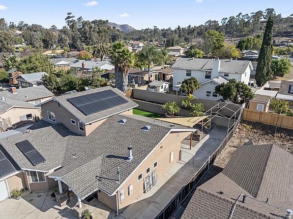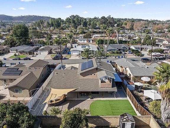 Welcome to 14211 Frame Road, Poway, CA 92064 – a stunning 5-bedroom, 3-bathroom oasis that combines luxury, comfort, and sustainability, all wrapped in an inviting open floor plan. This is a rare opportunity to own a home where modern elegance meets outdoor bliss! Key Features include a spacious living area with an expansive layout, this home is perfect for entertaining and or relaxing. The cozy yet grand atmosphere invites you to make lasting memories. The living room has a wood burning stove and the gourmet kitchen in the heart of the home boasts newer Diamond kitchen cabinets with soft-closed doors, a stylish tile backsplash, and beautiful granite countertops. Enjoy cooking with your high-end stainless-steel appliances, including a 36-inch gas range and hood, all while having the convenient walk-in pantry at your fingertips. This home is Eco-Friendly: Say goodbye to electric bills with the "Seller Owned" 6.4KW solar system, ensuring you're living sustainably while enjoying the comforts of home. The tranquil and generously sized primary suite features French doors that lead to a charming, covered balcony, perfect for sipping morning coffee. The primary bedroom includes a walk-in closet and a beautifully tiled travertine shower in the bathroom. Your new backyard is an entertainer's dream! Host a barbecue at the outdoor BBQ island featuring a grill and Big Green Egg smoker. Gather around the natural gas firepit, or relax on the covered patio overlooking the lush, low-maintenance landscaping. Outlet in Garage can be used for an electric car. RV parking outlet also