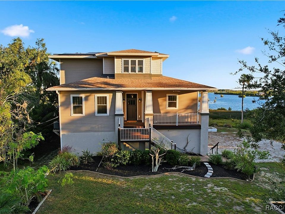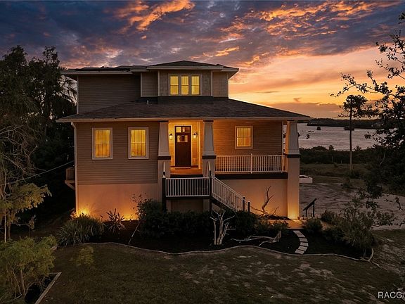 Nestled along the historic Ozello Trail, where winding salt marshes meet the Gulf, this 2018-built, three-story waterfront home blends modern luxury with Old Florida charm. Featuring 3 bedrooms, 2 baths, a 3-car garage, and 2,379 square feet of refined living space, it includes soaring 10-foot ceilings and 8-foot doors, a personal elevator, gas fireplace, and stainless-steel appliances—including a gas stove with a custom hood vent. Designed for efficiency, the home offers fully paid-off solar panels (average electric bill around $40/month), a built-in generator, a security system, and an irrigation system for the landscaping. A screened lanai on the second level invites coastal breezes and sunset views. The primary suite opens to a serene open-air porch overlooking the Gulf—made for sipping your morning coffee and watching the sunrise. The spa-inspired primary bath features a step-in shower and elegant clawfoot tub. Outdoor living shines with a brand-new dock, in addition -- a drive on dock designed to hold up to approximately 3,500 pounds, may also be used for jet skis or kayaks. There is also a fish-cleaning station—offering a true waterfront experience for boating and fishing enthusiasts. Enjoy easy access to the Gulf, with an additional public boat ramp located just 1.7 miles from the property (2045 S John Brown Dr, Crystal River, FL 34429—directly off Ozello Trail), and another boat ramp conveniently situated at the end of Ozello Trail past Peck’s Seafood Restaurant. Set on .80 acres with no HOA or deed restrictions, the property offers freedom for full-time living or a lucrative AirBNB opportunity. The three-car garage provides ample space for vehicles, a boat, or trailer storage. Steeped in history, Ozello was once reachable only by boat until the trail was completed in the 1960s—preserving its rare, unspoiled beauty and coastal character. Here, sunsets rest gently over the water, and life moves at a slower, more beautiful pace—naturally serene, full of wildlife, and undeniably luxurious.