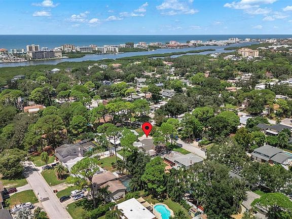 Location! Location! Location! FLOOD ZONE X!!!! 1 mile from Highly Regarded Schools, 2 miles from the Gulf Beaches! NEW ROOF (2025), NEW FLOORS (2025), FRESH PAINT (2025) throughout. 5 Generous Bedrooms, with 3 Bathrooms. Just under 3000 Square Feet, all on a Single Story! With the ideal combination of mid-century architecture and modern conveniences, this light, airy, large home was built by Avanzini Builders and is being brought to the market for the first time in many years. This exquisite home is located in the highly sought-after Whispering Pines Subdivision and offers the perfect blend of comfort, style, and functionality. Light and Open Living Area with high vaulted ceilings seamlessly connect to the kitchen and dining areas, making this home perfect for entertaining. External windows have been upgraded to Double-paned Impact Glass, with additional Hurricane shutters for extra protection. Bright and airy Florida room with working wood burning fireplace, overlooks the garden and extended patio! Oversized 80’x120’ Lot has enough room for a pool, while still having plenty of yard. A one-story home of this size with a large 2 car garage, in this location, does not come on to market often!