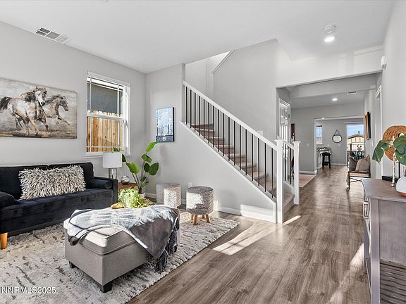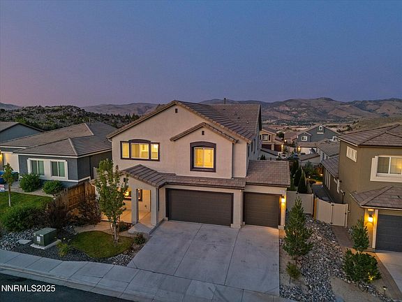 This beautifully designed 4-bedroom, 3-bathroom, oversized 3-car garage home in the highly sought-after Symphony Ridge neighborhood of South Reno, offers 3,264 sq ft of spacious living and is the largest floorplan available. Built in 2020 and tucked into a quiet cul-de-sac, the home boasts breathtaking mountain views and high-end touches throughout. Freshly painted and professionally cleaned, the home is move-in ready. Downstairs includes two large living rooms, a separate formal dining room, a full bedroom with bathroom - ideal for guests or multi-generational living, plus a mudroom with a drop zone just off the oversized 3-car garage. Upstairs, a huge bonus room offers flexible space for work, play, or relaxing, and the conveniently located laundry room is near all the bedrooms. The massive primary suite includes luxurious finishes, an oversized walk-in closet, and a spa-like bathroom retreat. All additional bedrooms are generously sized with large walk-ins and bathrooms designed for comfort and space. Luxury vinyl plank flooring runs throughout the home, a tankless water heater offers energy efficiency and a PURE WATER whole house purification system adds a further upgrade. All of this is just a short stroll from some of South Reno's top-rated schools. Comfort, elegance, and unbeatable location - this home checks all the boxes.