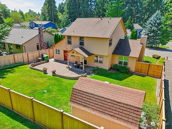 Immaculate 3 BR 2.5 Bth 2 story in beautiful sought after Silver Firs! Great floor plan w/vaulted ceilings, abundant natural light, cozy wood FP, sunny kitchen & freshly painted Office w/its own separate entrance! Upstairs finds 3 nice BR’s w/inviting freshly painted spacious primary en suite w/tiled shower & tub & solid surface counter. Outside, enjoy glorious professionally designed landscaping & a lovely quiet, newly fenced backyard w/featured partially covered brick paver entertainment patio! Greenbelt & open space on 2 sides adds to privacy & ambiance. Recent exterior & downstairs interior paint, too. Wealth of amenities nearby--trails, parks, fine schools, YMCA, restaurants, shopping & MC Town Ctr! You'll love living here!
