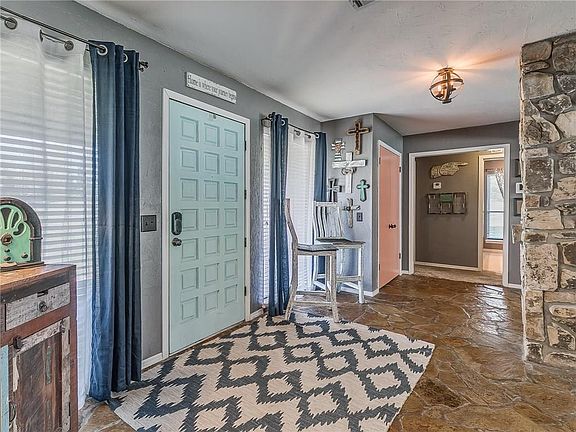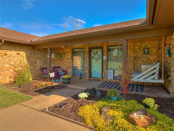Beautiful, loved home with 3 beds, 2 baths, pocket office, situated on a stunning 2.4 acres with an inground pool in Mustang schools! Enjoy your your new home by taking in all of the nature and beauty that surrounds you. You'll adore the new wood look tile, spacious living area, wood burning stone fireplace, wood beams in living area, lovely kitchen open to dining and living room, shiplap ceiling, spacious master with separate tub and shower and huge picture windows allowing you to have beautiful views from the living area at all times!! Brand new pool liner, brand new hot water tank(2), new flooring, stone flooring, updated fixtures, fresh paint, insulated garage doors, neighborhood pond stocked with fish, walking trails and detached workshop! Laundry room with sink and storage! Make this your home and enjoy this beautiful, extremely peaceful estate with so much room to roam. You'll love watching deer, wild turkeys, birds and all of the cute little creatures. Schedule your tour today!