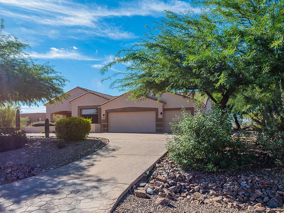 Vail School District! Welcome Home! This recently renovated single level 2760 SF home features 3 bedrooms and 3 baths! 2 additional bonus rooms at front of home for dens/home offices! Great Room concept! Split bedroom plan! Recently installed wood look tile though out entire home! NO CARPET! Large kitchen features upgraded/resurfaced cabinets w/pull outs, BRAND NEW Quartzite countertops, walk in pantry, NEW Stainless appliances! Dual Oven! Large Primary bedroom features access to back yard! Primary bath features dual sinks, large walk-in shower, and garden tub! Water Softener installed! Step outside into your own private backyard oasis with gorgeous mountain views, putting green, water fall and outdoor kitchen! Gated courtyard in front! 3 car garage! Schedule your showing today