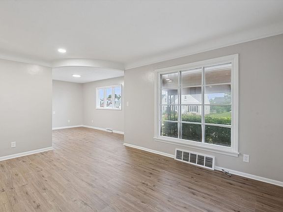 This charming home offers an open-concept living space, featuring a bright living room, dining area, and an updated kitchen with new shaker-style cabinets, quartz countertops, and modern black hardware.