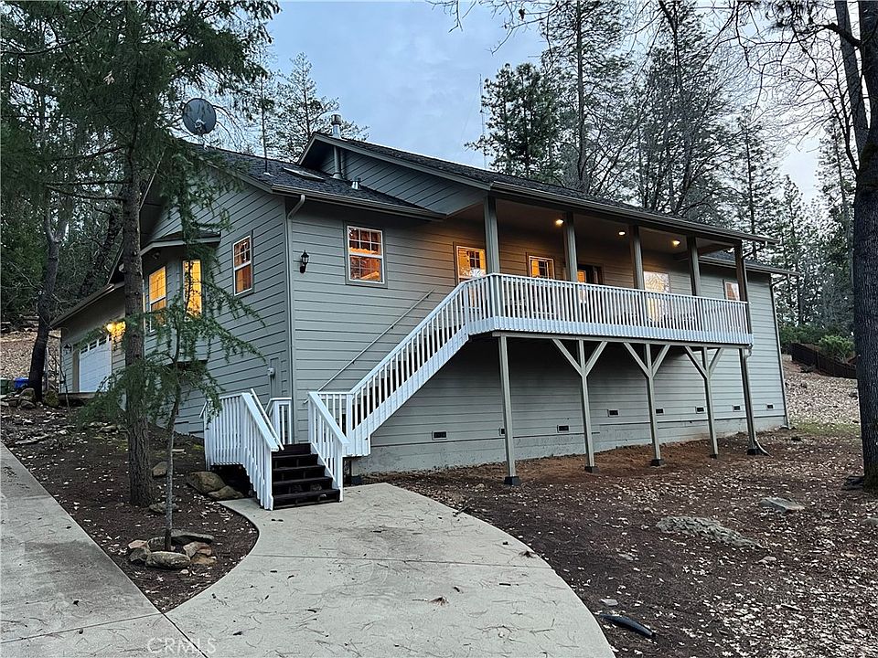 PRISTINE QUALITY HOME IN THE BEST NEIGHBORHOOD in the south of Lake County. One wooded acre parcel for space, privacy and quiet, looking towards the other impressive homes in the area. Entering from the front porch, you come into a great room with vaulted ceilings, ceramic tile flooring and good natural light and then opening onto a covered rear deck and lawn area for complete seclusion. At the side of the great room, there is a family chef's kitchen with ample tile counter tops and solid wood cabinetry for easy and creative food preparation. There is a large dining area within the great room and plenty of room for living and family areas. The master suite with its own bathroom, has two closets, separate jetted tub, tiled shower and twin sinks. The other two bedrooms are generously-sized with 9 foot ceilings. The fire-wise yard has magnificently towering Ponderosa pines and scattered Valley Oaks adorning the parcel. The back yard is fenced to keep pets safe and wildlife out for your gardening pursuits. There is an oversized garage along with a guest bath and a separate laundry room, parking for all your vehicles and basement development potential for extra living space. This flawless home has a lovely airy flow and is conducive to a fulfilling lifestyle with easy access to the outdoors so you can appreciate the wonderful natural forested environment where you can fully experience the four seasons.