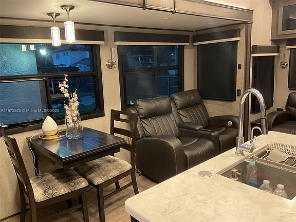 Cozy RV available for monthly rental in a quiet property setting. Features 1 bedroom, 1 bathroom, living room, dining area, and kitchen. Ideal for a single person at $1,200/month, or for a couple at $1,400/month. Fixed monthly rent includes water, electricity, and internet. Convenient location with a private setting. Perfect for long-term tenants seeking comfort and affordability.