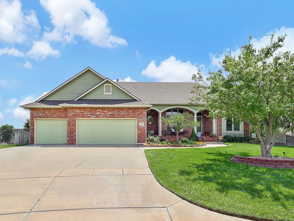 xperience luxurious living in this beautiful residence located in West Wichita within the desirable Goddard school district. Nestled on a cul-de-sac lot, this home features a large inground pool with a newer liner, pool cover, and a brand new pool pump, making it perfect for relaxation and fun. The backyard is ideal for entertaining and family gatherings. The main floor boasts 10-foot ceilings and exceptional craftsmanship, highlighted in the fireplace room and formal dining room. The split bedroom layout ensures privacy and convenience. The owners have recently upgraded the flooring throughout much of the home. Additional features include view-out windows, a family room with a custom bar, and an additional recreation room perfect for hosting separate gatherings or sporting events. The backyard also backs up to a spacious common area, enhancing the sense of openness and tranquility. This stunning home is ready to welcome you!