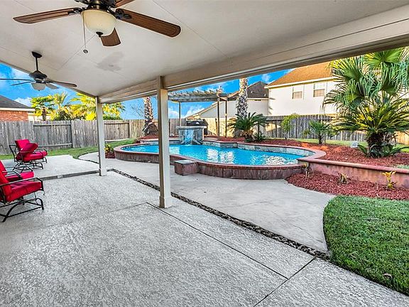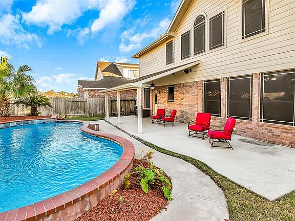 Need your OWN OASIS??? This home is absolutely LOVELY and pride of ownership shows! Awesome floor plan with 4 bedroom upstairs. Impressive tiled foyer, with solid wood floors in the living room, study, dining room and stairs. Spacious kitchen with an abundance of cabinet space, granite countertops and a large pantry. Large master bedroom with a high ceiling, upgraded H&H vanities, tile shower, and walk-in closet. New carpet, 2 AC units controlled by Nest thermostats, new water heater, large waterfall swimming pool, covered patio, 4 outdoor speakers, 5 in-ceiling surround sound speakers in the living room, Wi-Fi controlled 7 zone sprinkler system, Wi-Fi controlled garage opener, whole house water softener system, and RO drinking water system in the kitchen. A great location on cul-de-sac street offers a large backyard for kids, pets, plants. Enjoy the covered patio for grilling or relaxing. Refrigerator, oven, microwave, and dishwater is included. No flooding. Don't miss this home!