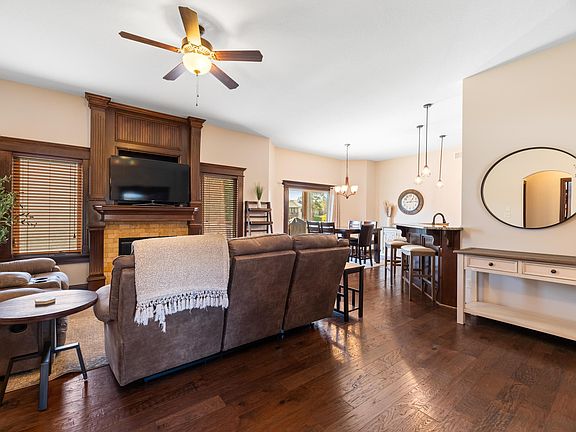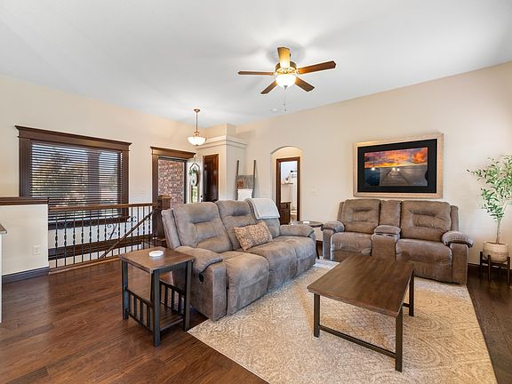 Welcome to your new home in the Goddard school district! This well-maintained home boasts custom finishes throughout and features an open floor plan. This gorgeous home was custom built in 2015 and features many upgrades. Some upgraded features include: custom woodwork throughout, granite counters, LVP throughout main living spaces, tile in bathrooms, and a view out/walkout basement plus so much more. The main floor offers a split bedroom floor plan with a spacious primary bedroom as well as main floor laundry connected to primary bedroom closet. Other features on the main floor include: pantry, large drop-zone, ample storage spaces, and tons of natural light throughout. The covered deck located right off of the dining space is a great area to bbq and entertain family and friends. Downstairs, you will notice the large family room complete with a generous sized custom bar. The family room downstairs also has a separate area for more entertaining, or if needed this area could be converted into a fifth bedroom. The fourth bedroom, third bathroom, an unfished storage area, and a hidden mechanical room behind the built-in bookcase finishes off the basement level. Stepping outside of the lower level you will see a great area for a hot tub. The back yard which is fully fenced boasts tons of green space as well as a large concrete slab for additional entertaining space. Come check out this amazing home!!