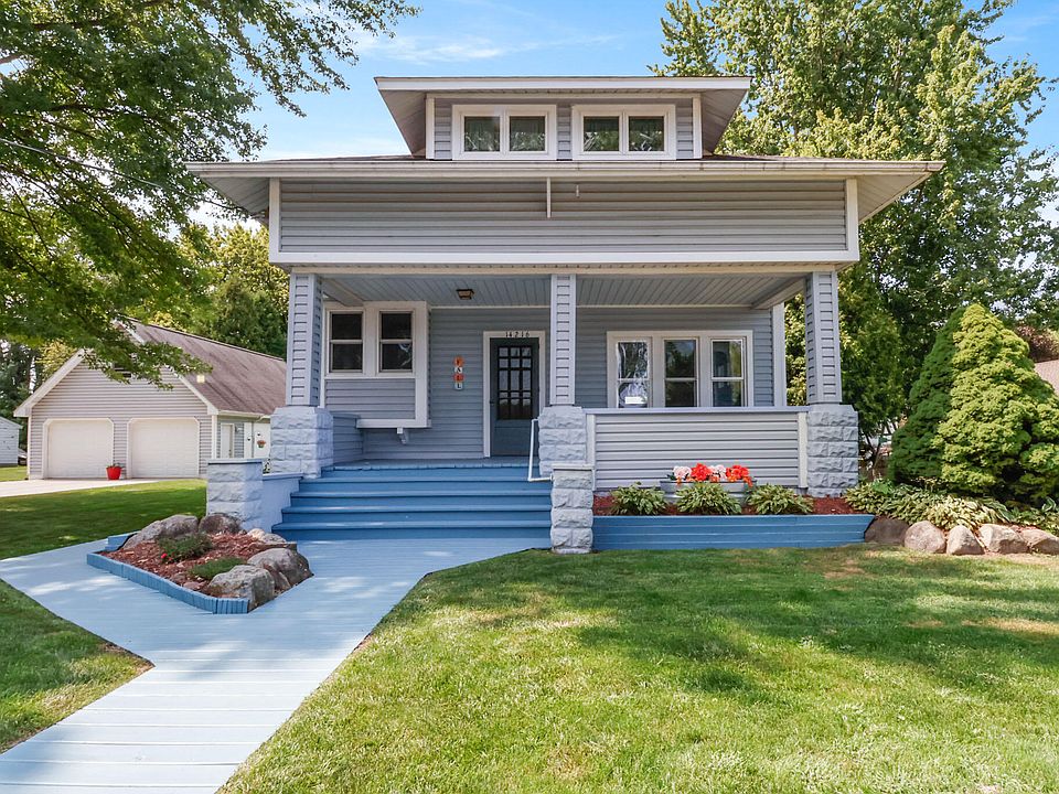 This beautiful 3 bedroom 2 bathroom cape cod has all of the charm of an old farmhouse, but all of the modern conveniences to move right in today! The almost 400 main level square foot studio apartment off the garage is the perfect guest space, in law suite, or even for your older kids. The house has a spacious kitchen with newer appliances, gorgeous hardwood floors throughout the dining and living room. Built in window benches, (all windows replaced in 2005) and detail. a 3/4 bathroom rounds out the main level. The staircase up is the focal point with it's wood detail and built in seating on the way up. On the second level you'll find 3 bedrooms, a full bathroom, and a huge loft area. The basement has the laundry, and indoor/outdoor dog run, and the original claw foot tub is hooked up as the best pet shower! There is a door out from the basement with a storm door that brings natural light. Furnace and A/C are less than 10 years old. The 2 1/2 car detached garage has a ton of storage space on the main level as well has an entire second floor of unfinished space ready for finishing or using for additional storage. The attached main floor almost 400 square foot studio apartment has a living/bedroom area, a full kitchen, and a 3/4 bathroom. The yard is beautifully landscaped with a shed for added storage! Located in the Crown Point school system, close to downtown and commuting, but away from all of the traffic and noise. It's really a perfect spot!