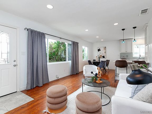 Discover a rare gem in South Park, San Diego - a unique Two Homes on one large single lot! This property is nestled in a highly desirable neighborhood, exudes charm with its attractive curb appeal and easy-care landscaping. Step into the main residence, a delightful 3-bd, 2 1/2-bth home, where you'll be greeted by original oak wood floors that flow seamlessly through the living room and bedrooms. The heart of this home is the kitchen, boasting custom cabinetry, sleek solid surface countertops, modern recessed lighting, and efficient double pane windows. French doors open to an inviting enclosed porch,( a bonus room), offering a serene view of the expansive backyard - perfect for relaxation or entertaining. Convenience is key, with a laundry area smartly incorporated into this space. (See supl)