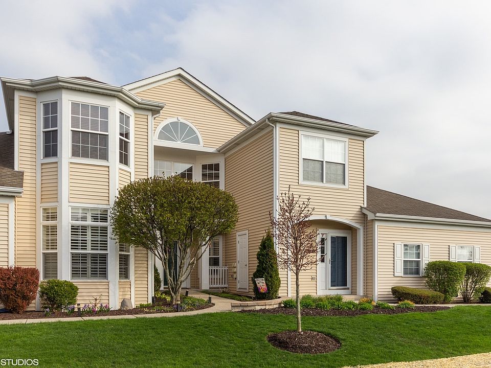 Carefree Living In the secluded preserve on the rock run subdivision. A quaint covered bridge welcomes you to this lovely area with lush landscaping and natural habitat. This home features dramatic soaring ceilings in the living and dining room area. Den in front of home with a bumped out bay. Kitchen with upgraded maple cabinets, stainless appliances and gleaming hardwood floor. Master bedroom suite with full master bath and great closet space. Additional second bedroom and another full bath! Convenient laundry room on main level also. Two car attached garage. Best of all a deck off the kitchen has a view of the trees and forest preserve!! Welcome home!!