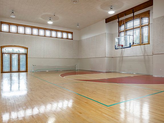 Resort-style swimming poolLarge timber beamsIndoor basketball courtAdditional detached garageGame roomSpacious great roomExercise room