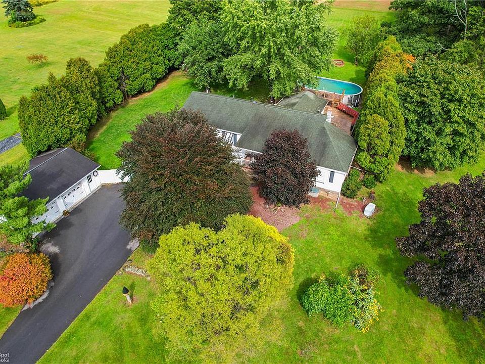 This beautiful ranch home is located in the Nazareth School District. This private home is nestled on 2.21 acres with mature landscaping to offer privacy & a relaxing koi pond in the frontyard. The home features gleaming hardwood floors, an updated kitchen with granite countertops, stainless steel appliances, & tile backsplash, a 2 car detached garage, 3 bedrooms, & 2 full bathrooms. It has been updated to feature modern paint shades & light fixtures. It offers a generously sized living room with a beautiful wood slat ceiling & a large bay window for natural light to spill in. In addition, it also has an extra living space that could be utilized as a family room or office for remote working. The exterior of the home showcases a spacious wrap around deck with ample seating & above ground pool. The home also offers the convenience of a generator & updated electrical. Call today to set up your private showing! *MULTIPLE OFFERS HAVE BEEN RECEIVED - HIGHEST & BEST DEADLINE IS MONDAY, SEPTEMBER 25TH @ 9PM. EXPECTED RESPONSE TIME FOR A DECISION IS TUESDAY BY DINNER TIME.*