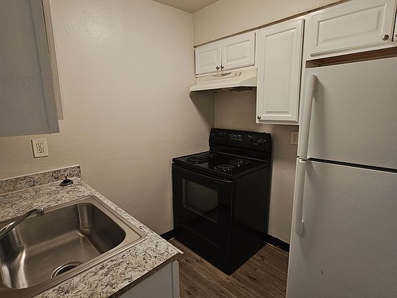 Easy-care vinyl floorsWell-kept brick buildingFresh paintGround-level unitOff-street parkingPlenty of natural light