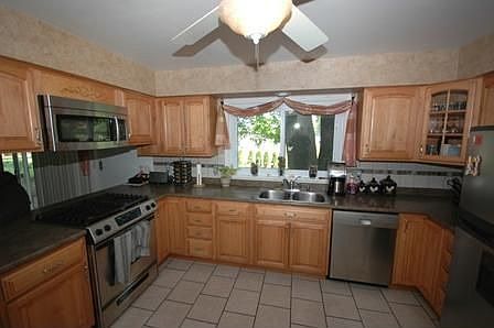 QUALITY HOME HERE!! NICE SPACIOUS LIVING RM W/STONE FPL & BLT-IN SHLVNG, FRML DIN RM. LARGE MASTER SUITE, TILE & MAPLE HARDWOOD FLOORS. RECENTLY NEW KIT W/SS STL APPLS, REMODELED BATHS, FAM RM W/BRCK FRPL, PATIO DOORS TO WOOD DECK. 1ST FLR BDRM WITH PRIV FULL BATH, FINISHED BSMT W/WET BAR.
